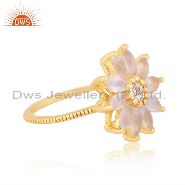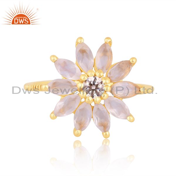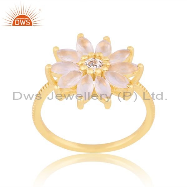 Moissanite & Rainbow Moonstone Combined Gold Ring