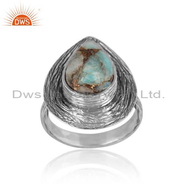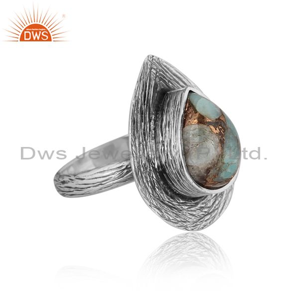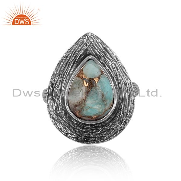 Mojave Copper Amazonite Pear Cut Oxidized Silver Ethnic Ring