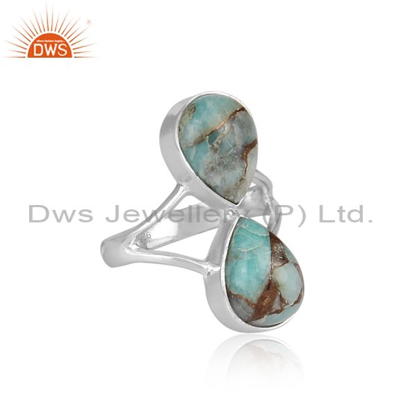 Mojave Copper Amazonite Set Fine 925 Silver Classic Ring