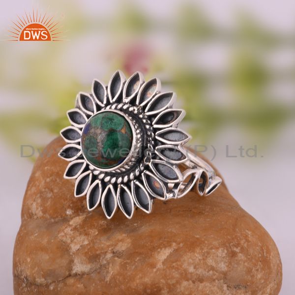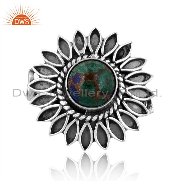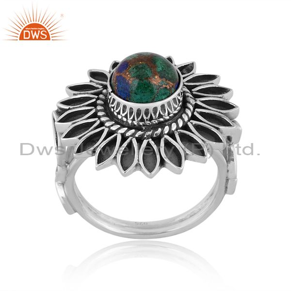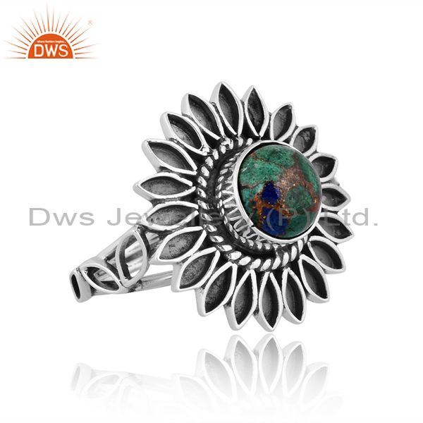 Mojave Copper Azurite Malachite Oxidized Silver Floral Ring