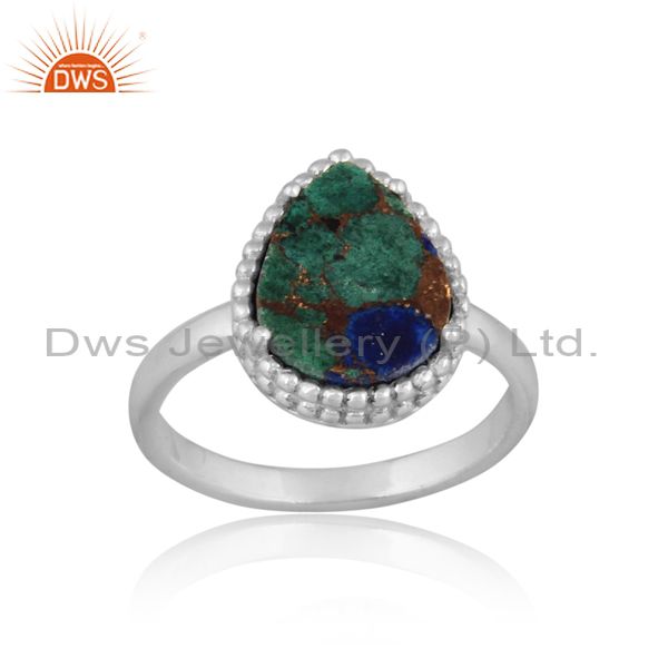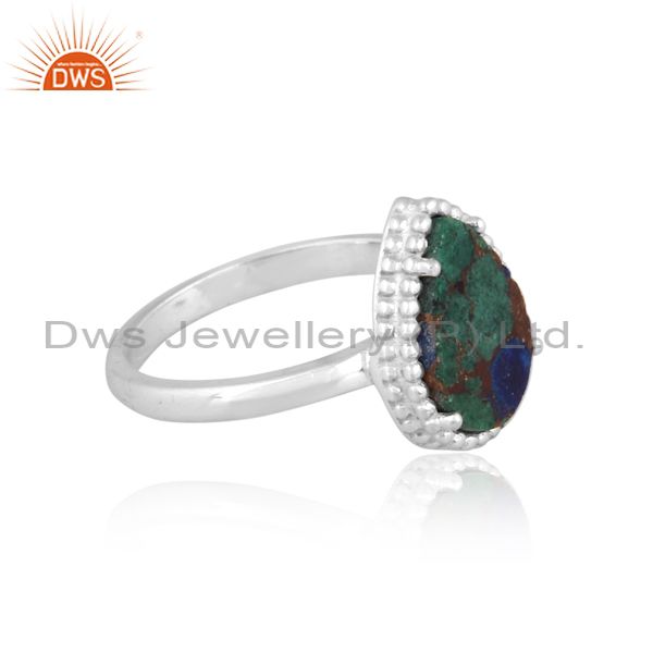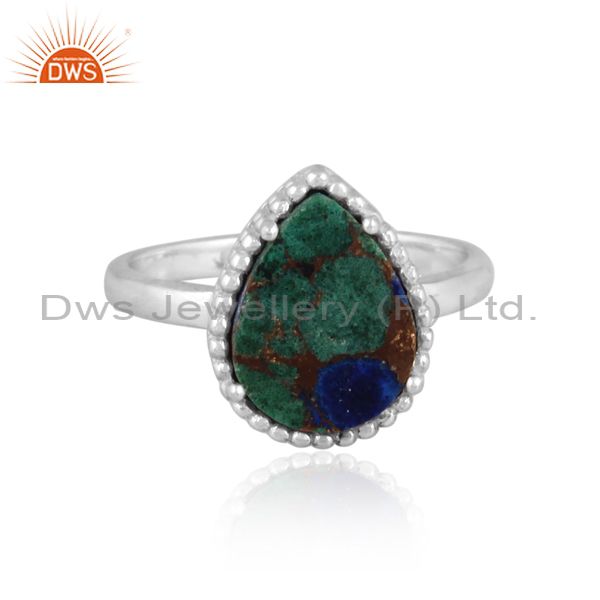 Mojave Copper Azurite Malachite Pear Cut Fine Silver Ring