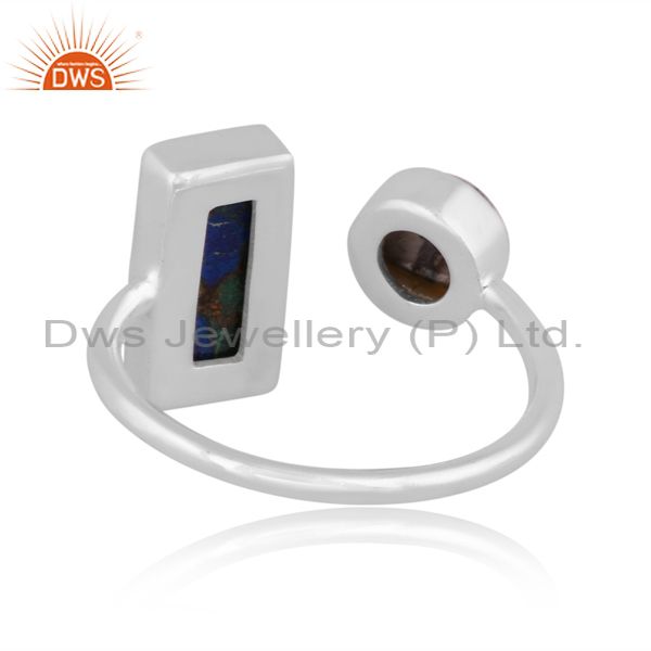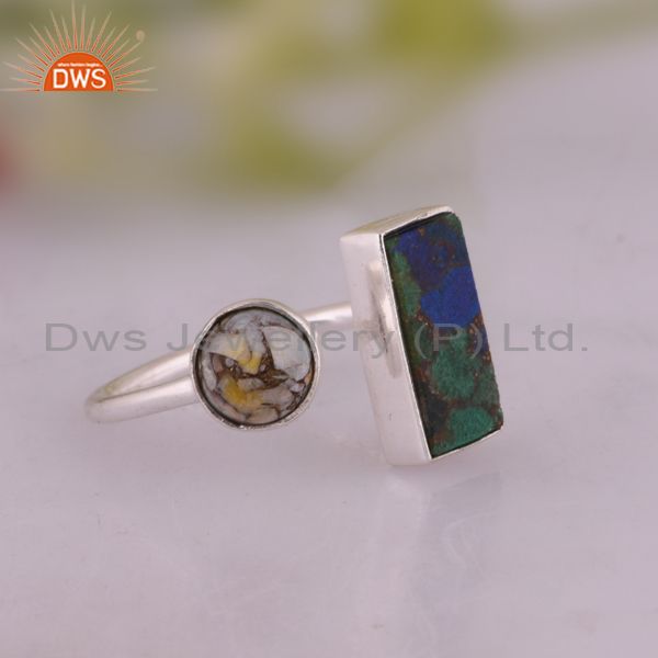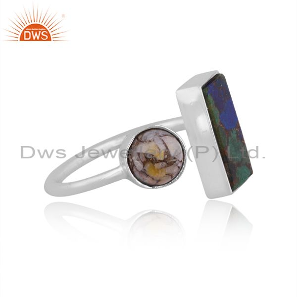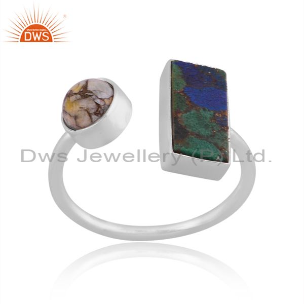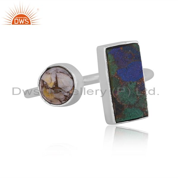 Mojave Copper Azurite Malachite Set Fine Silver Open Ring