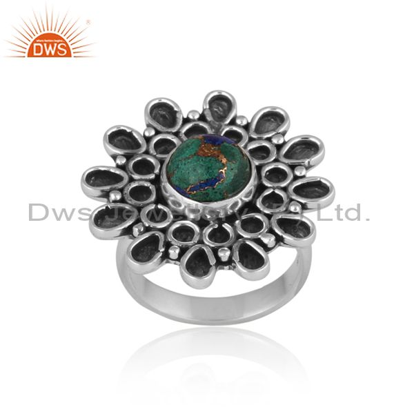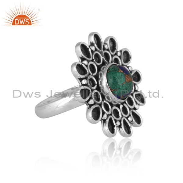 Mojave Copper Azurite Malachite Set Oxide Silver Boho Ring