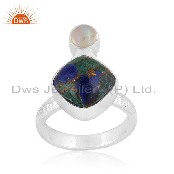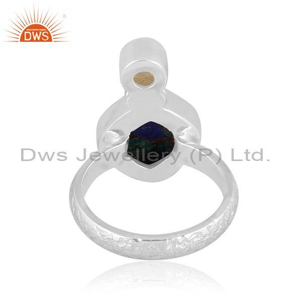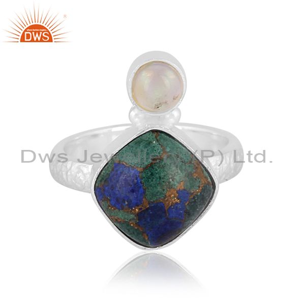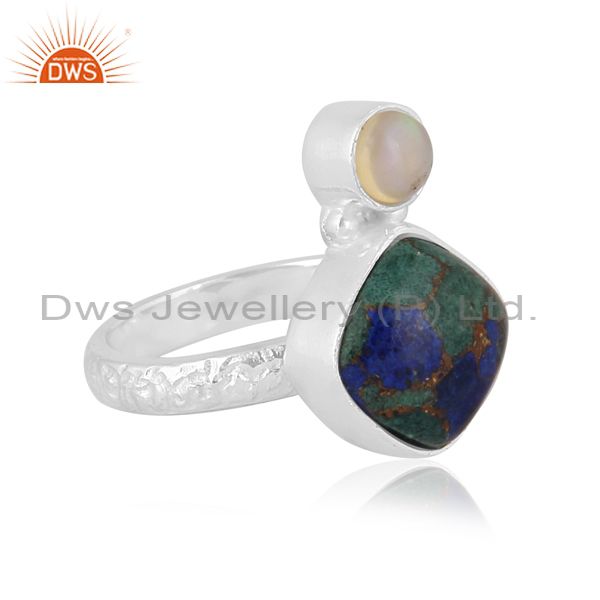 Mojave Copper Azurite Malachite Set Square Fine Silver Ring