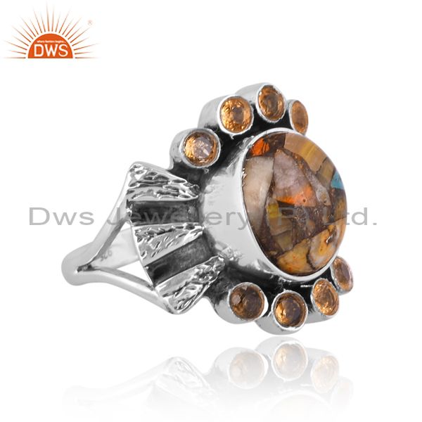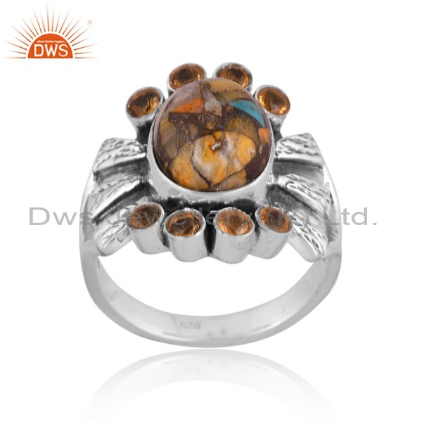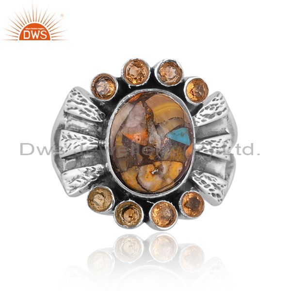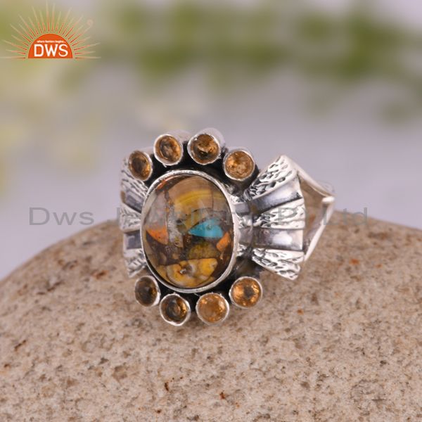 Mojave Copper Bumblebee Turquoise 925 Oxidized Silver Ring