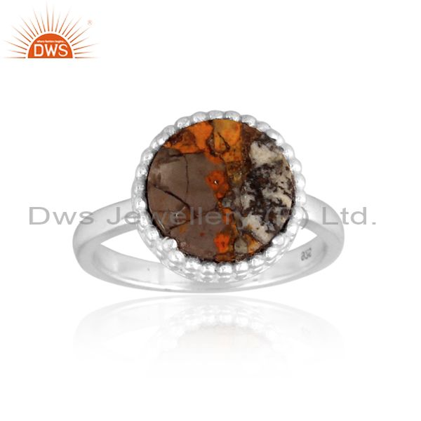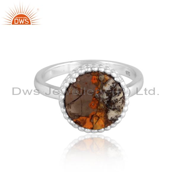 Mojave Copper Bumblebee Turquoise Set Fine Silver Round Ring