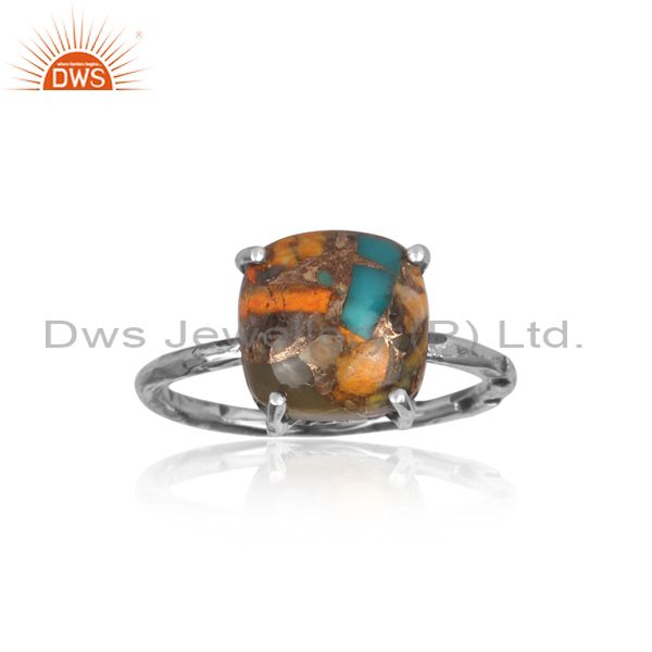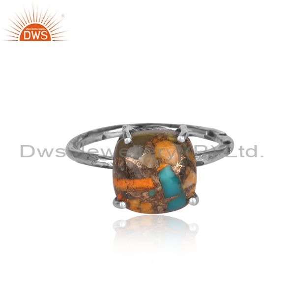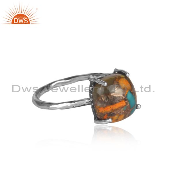 Mojave Copper Bumblebee Turquoise Square Oxide Silver Ring