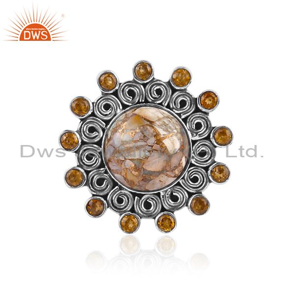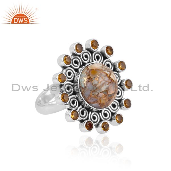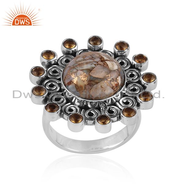 Mojave Copper Ethiopian Opal And Citrine Oxide Silver Ring