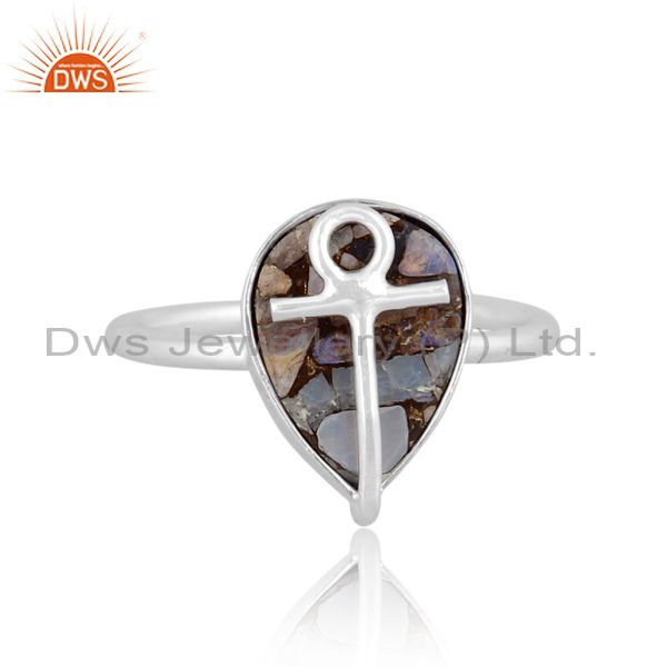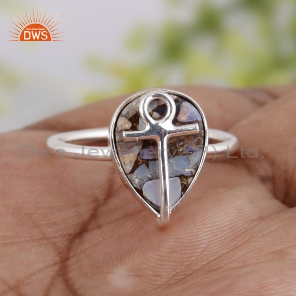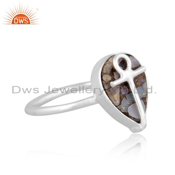 Mojave Copper Ethiopian Opal Coin Set Fine 925 Silver Ring