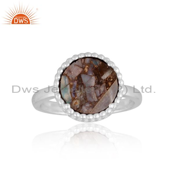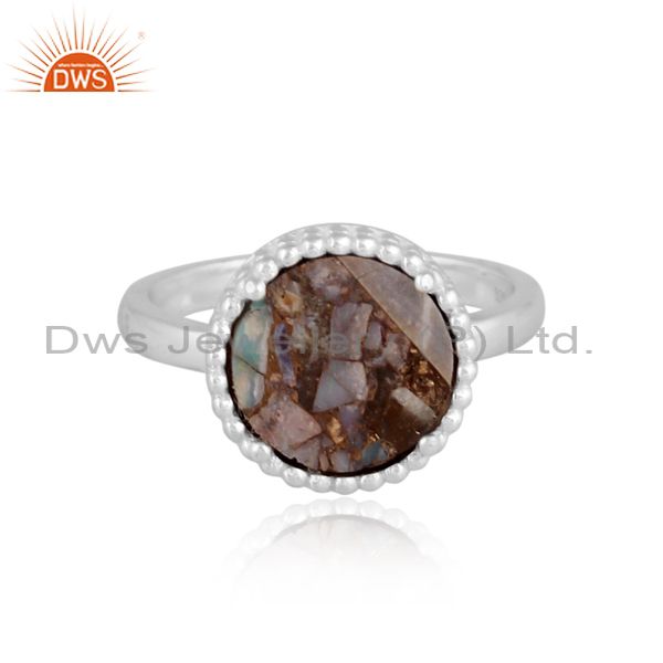 Mojave Copper Ethiopian Opal Coin Set Fine Silver Round Ring