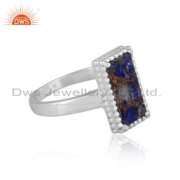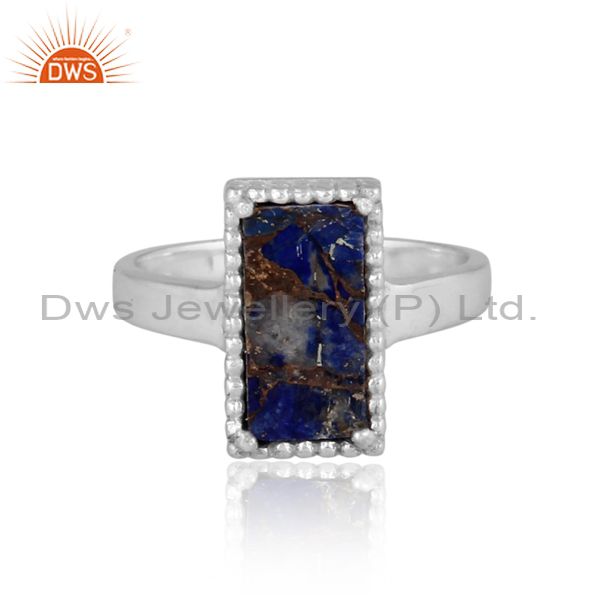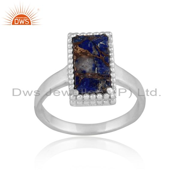 Mojave Copper Lapis Coin Set Rectangular Fine Silver Ring