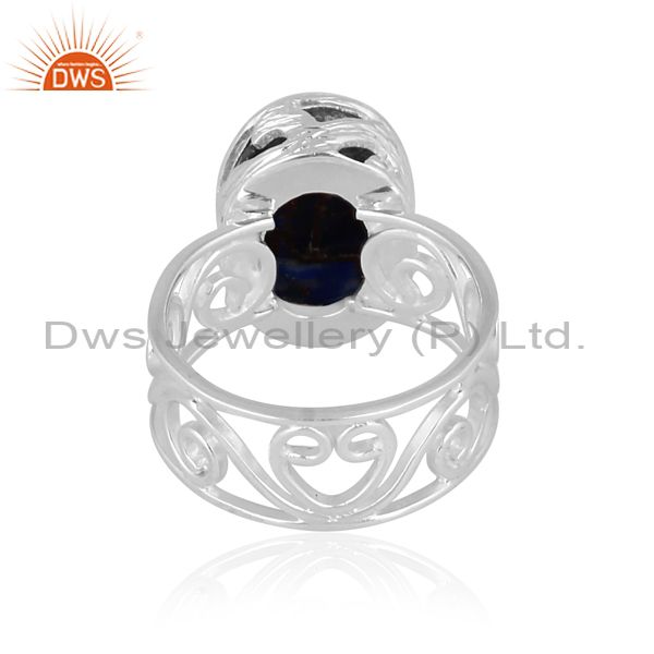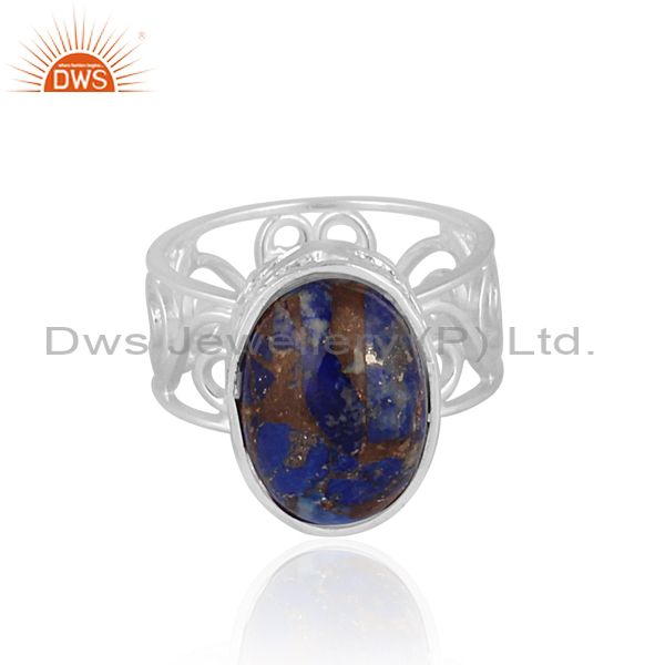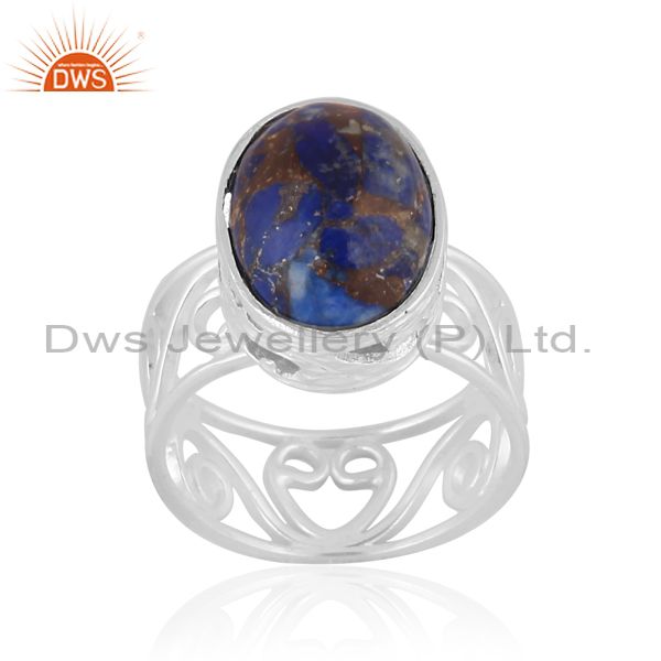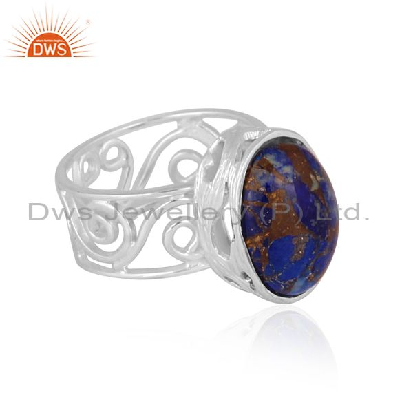 Mojave Copper Lapis Set Fine Silver Handmade Pattern Ring