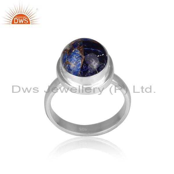 Mojave Copper Lapis Set Fine Sterling Silver Statement Ring