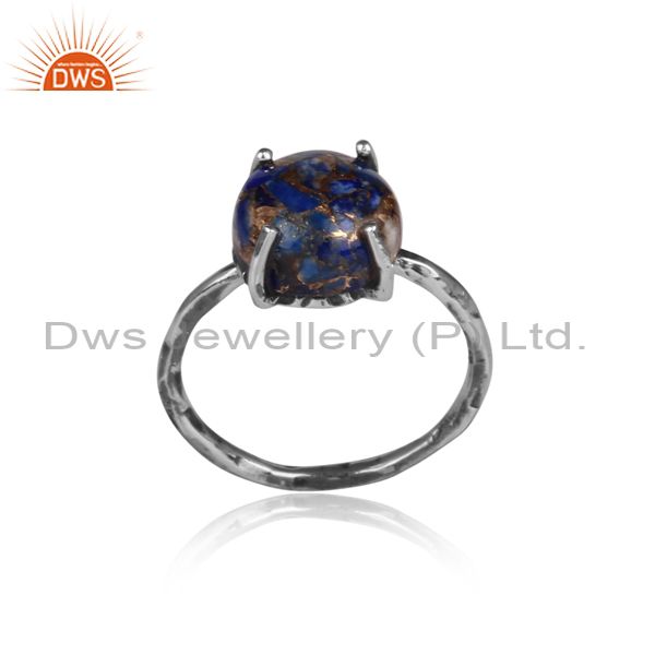 Mojave Copper Lapis Set Oxidized Sterling Silver Fancy Ring