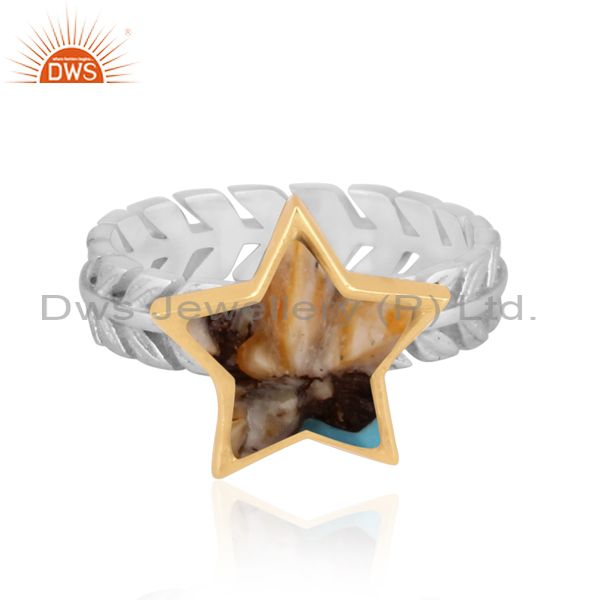 Mojave Copper Oyster Turquoise Fine Silver Star Charm Ring