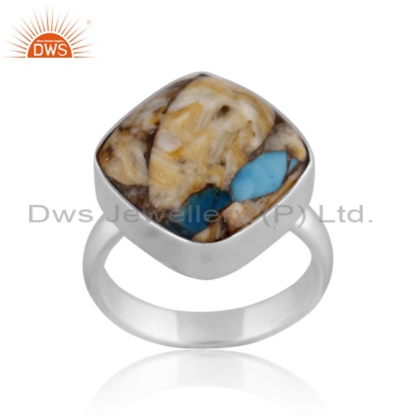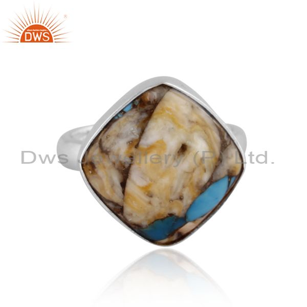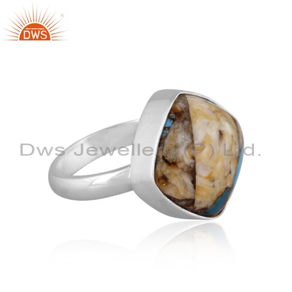 Mojave Copper Oyster Turquoise Set Fine 925 Silver Band Ring