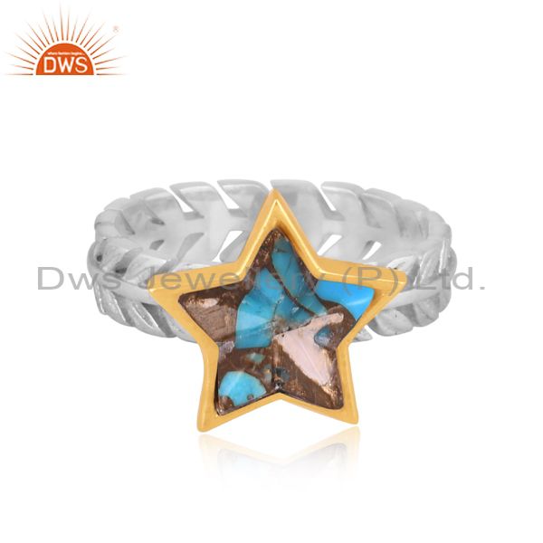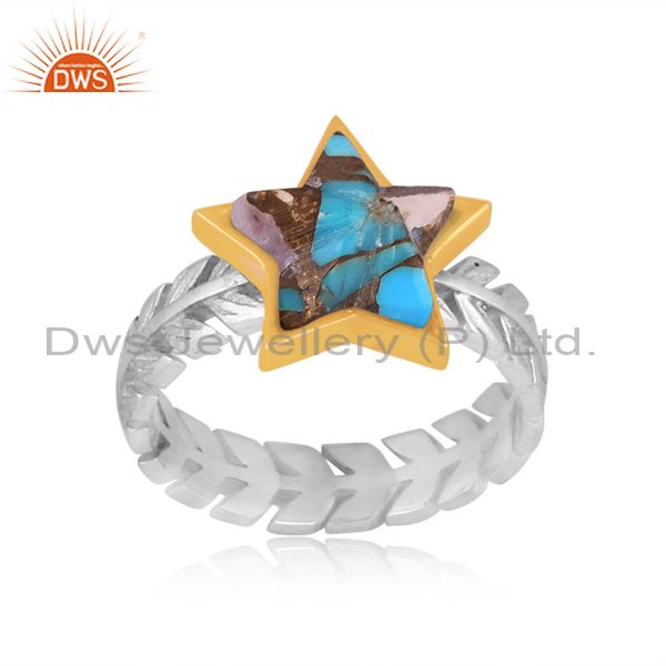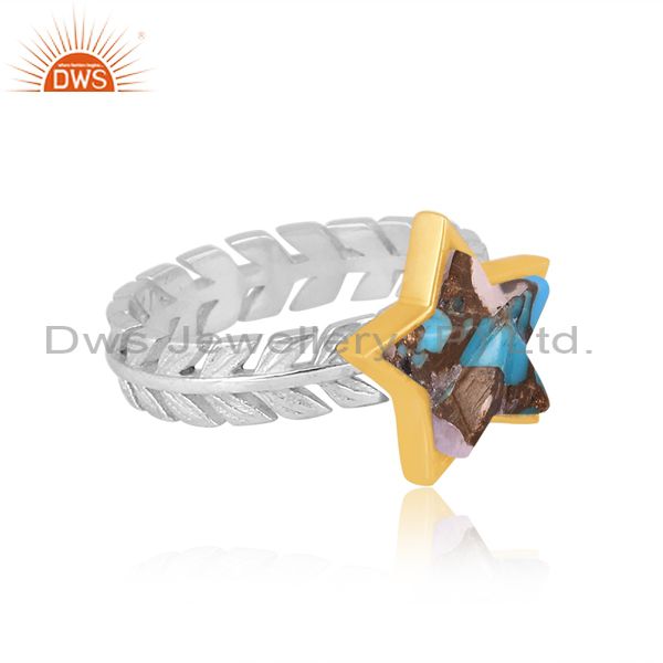 Mojave Copper Pink Opal Turquoise Gold On Fine Silver Ring