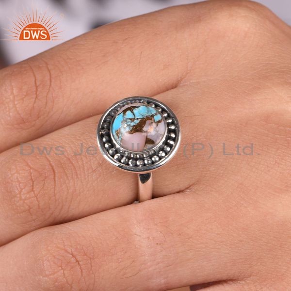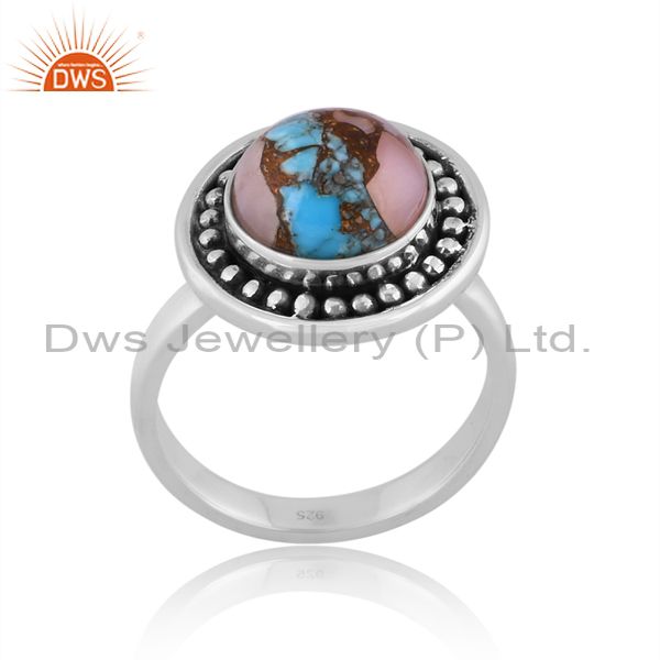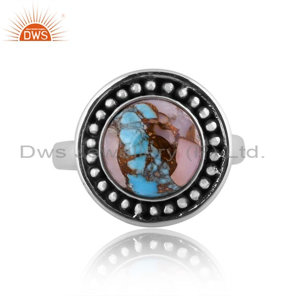 Mojave Copper Pink Opal Turquoise Oxidized Silver Ring