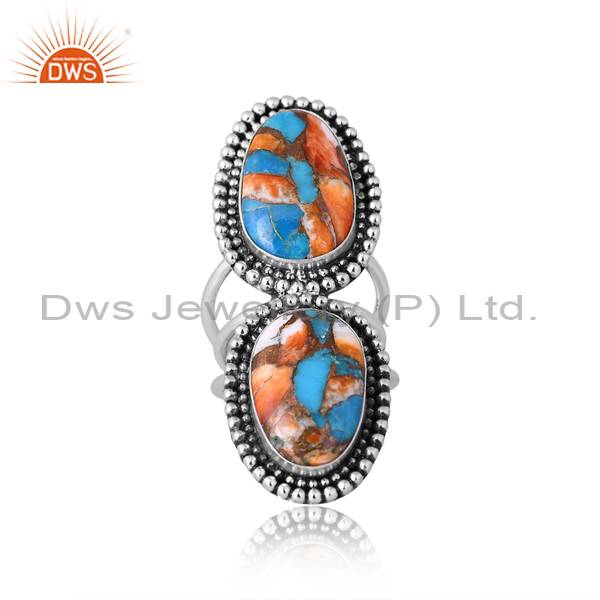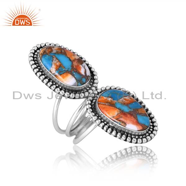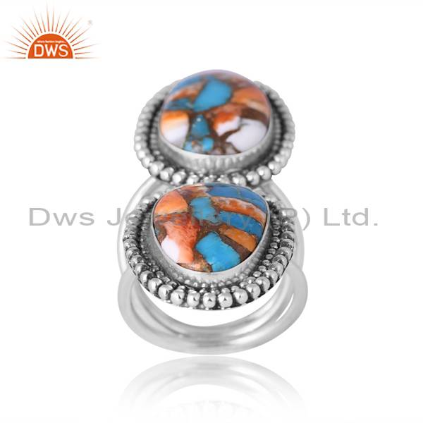 Mojave Copper Purple Oyster Turquoise Ring With Double Stone