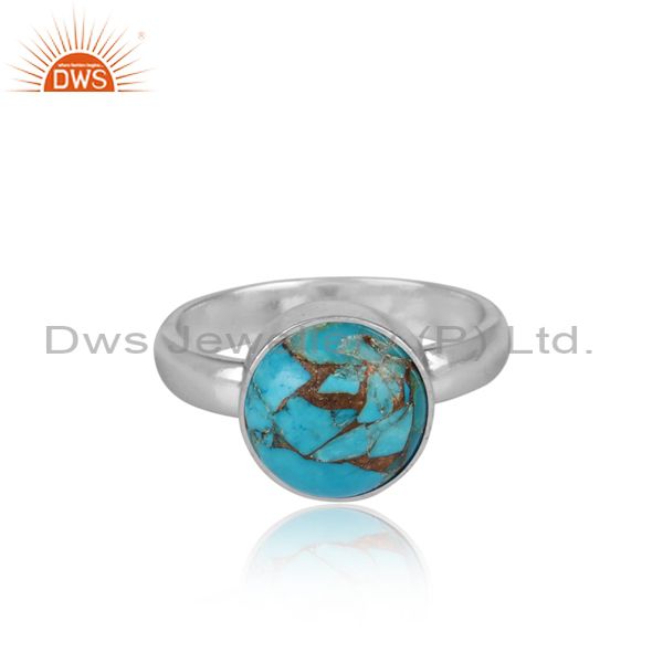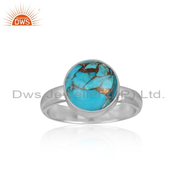 Mojave Copper Turquoise Set Fine Sterling Silver Band Ring