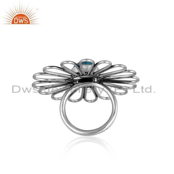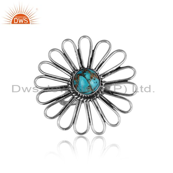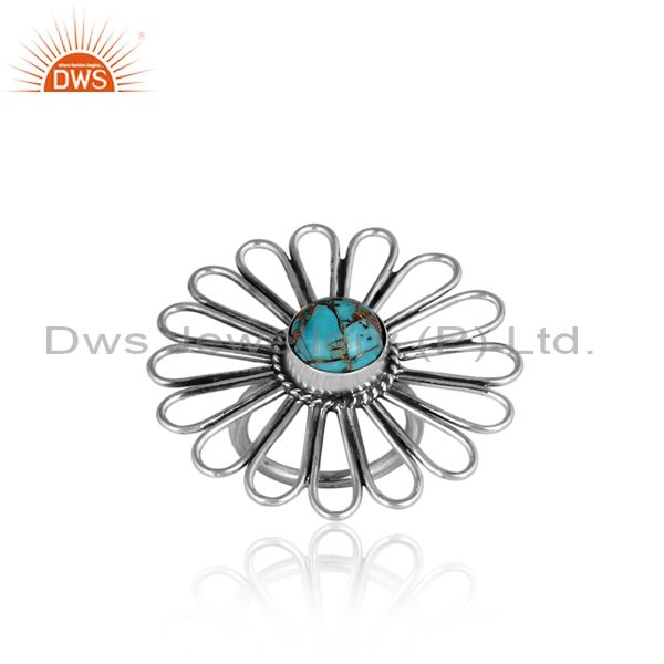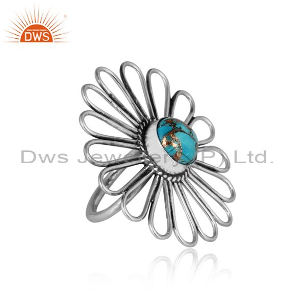 Mojave Copper Turquoise Set Floral Oxidized 925 Silver Ring
