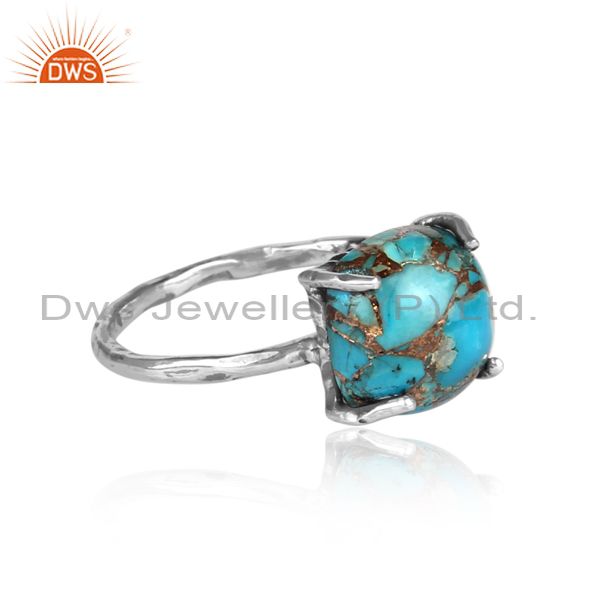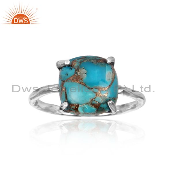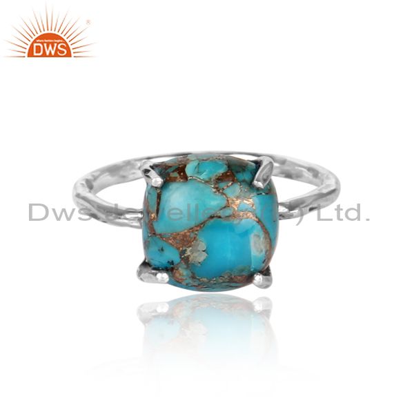 Mojave Copper Turquoise Set Square Oxide 925 Silver Ring