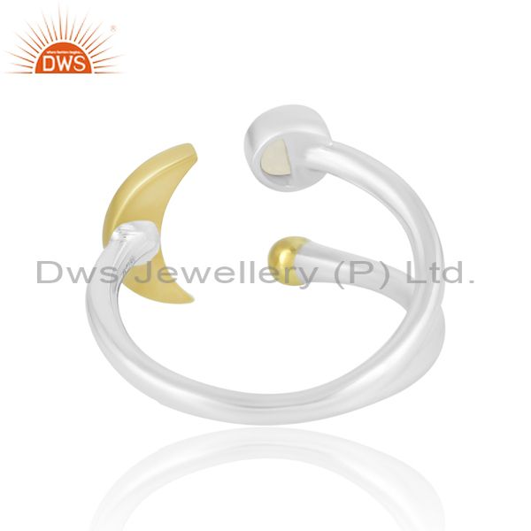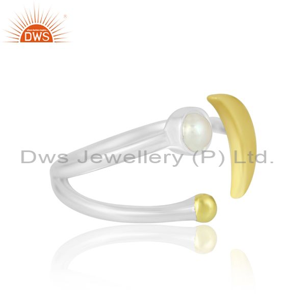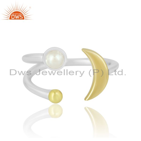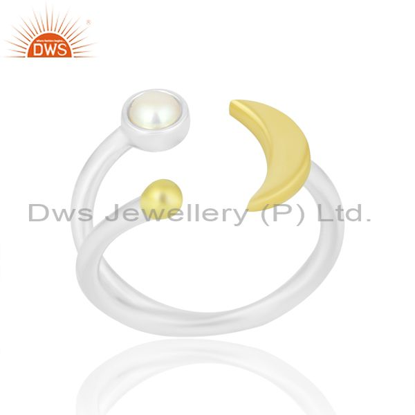 Moon And Dot Friendship Silver Ring With Pearl Round Stone