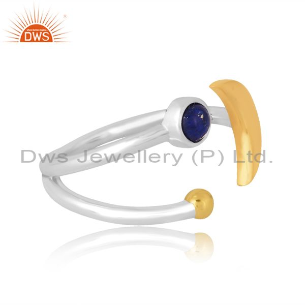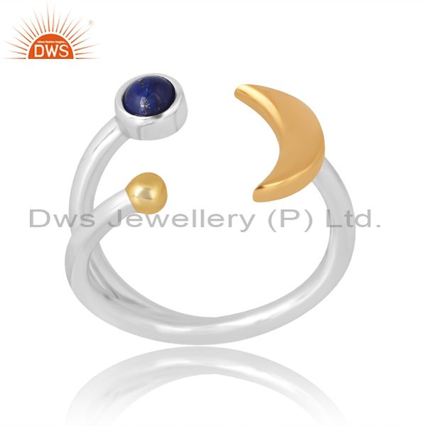 Moon And Double Dot Band With Lapis Cabushion In Silver