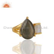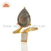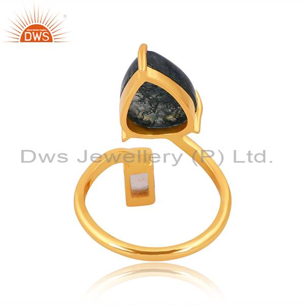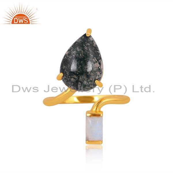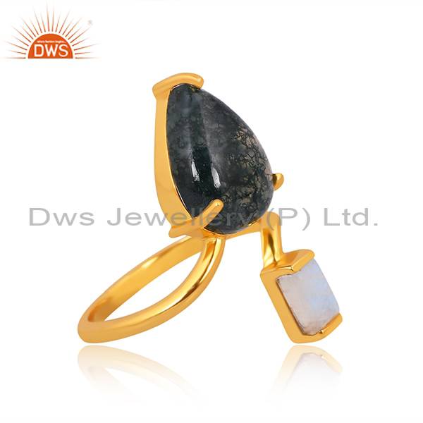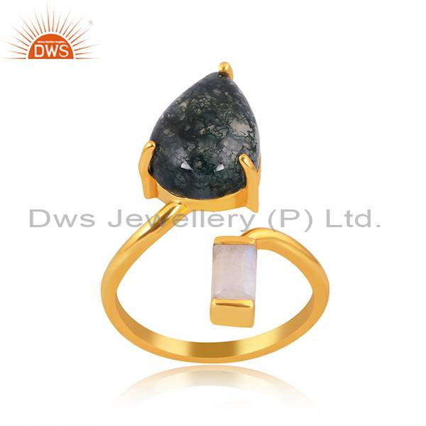 Moss Agate & Rainbow Moonstone Openable Ring For Women