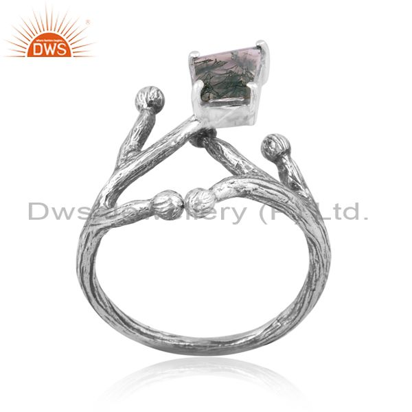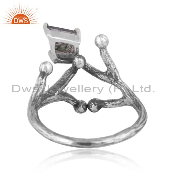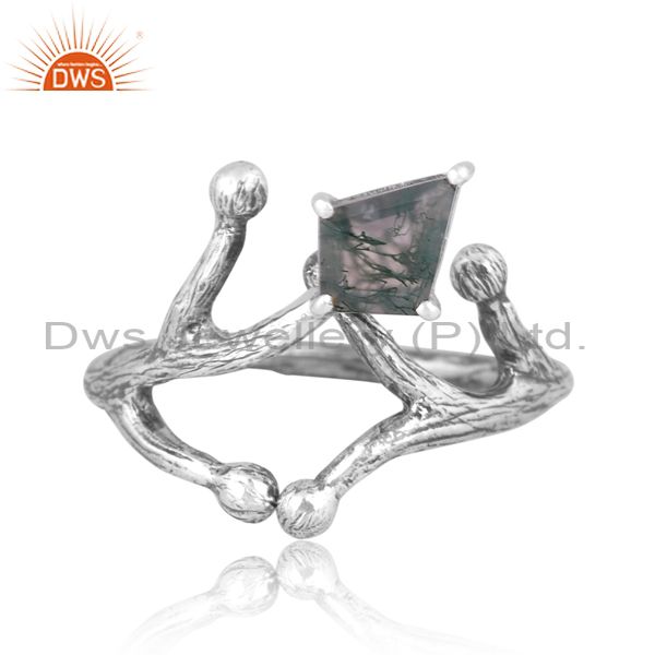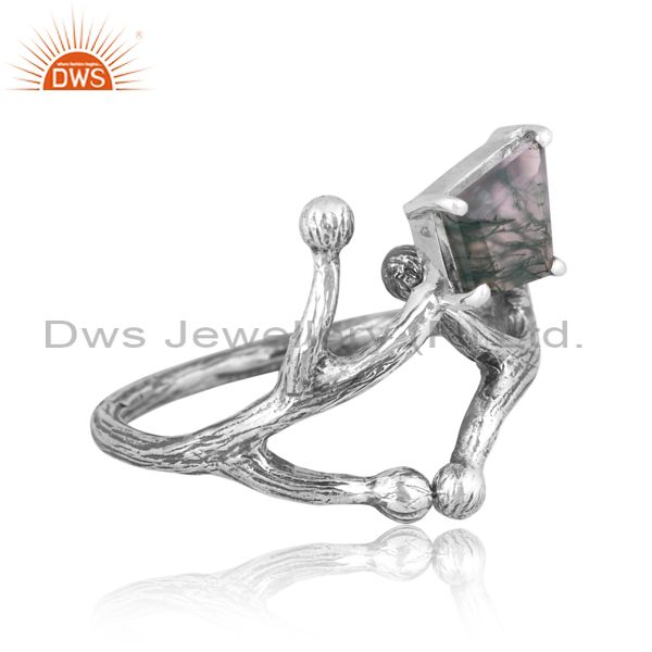 Moss Agate Set Oxide Sterling Silver Handmade Abstract Ring