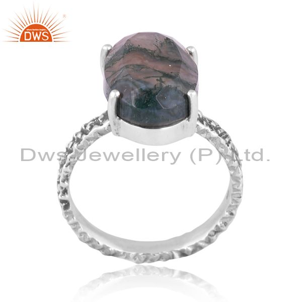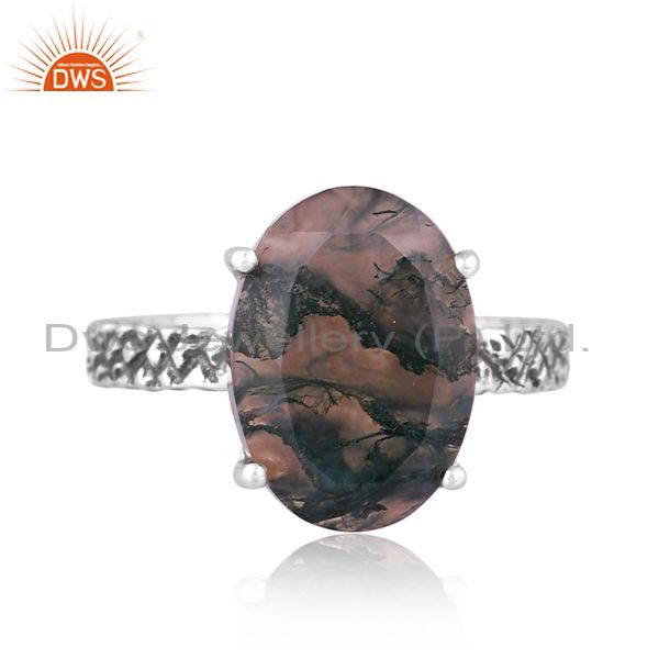 Moss Agate Set Oxidized 925 Silver Fancy Statement Ring