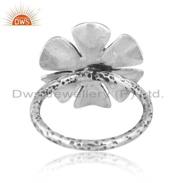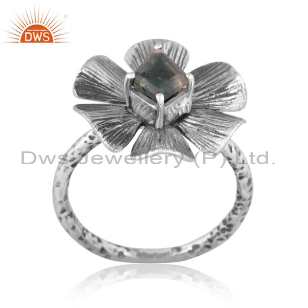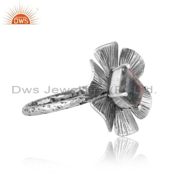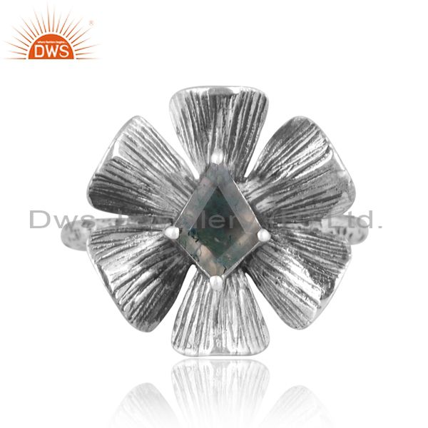 Moss Agate Set Oxidized Sterling Silver Handmade Floral Ring