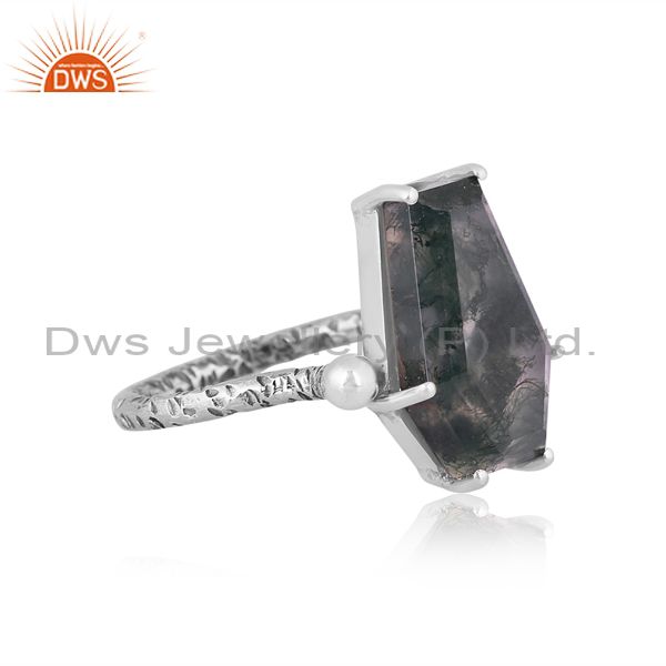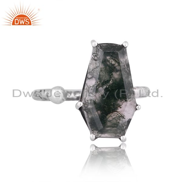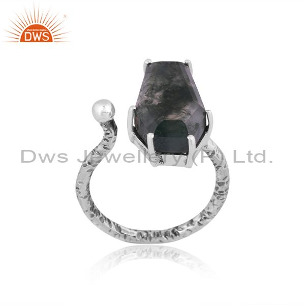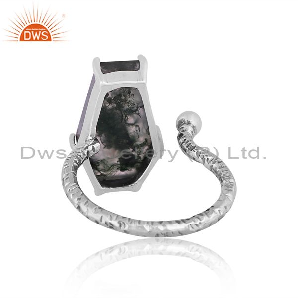 Moss Agate Set Oxidized Sterling Silver Handmade Open Ring
