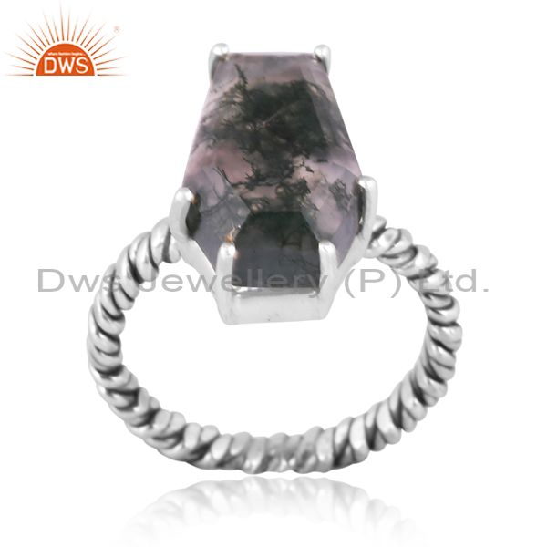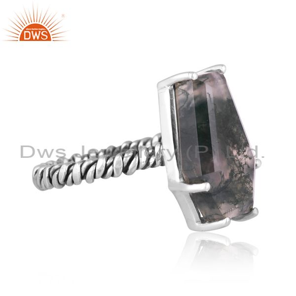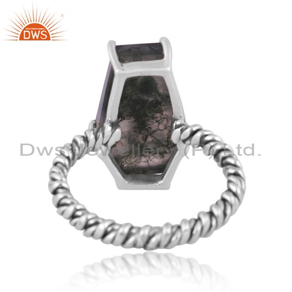 Moss Agate Set Oxidized Sterling Silver Handmade Twist Ring