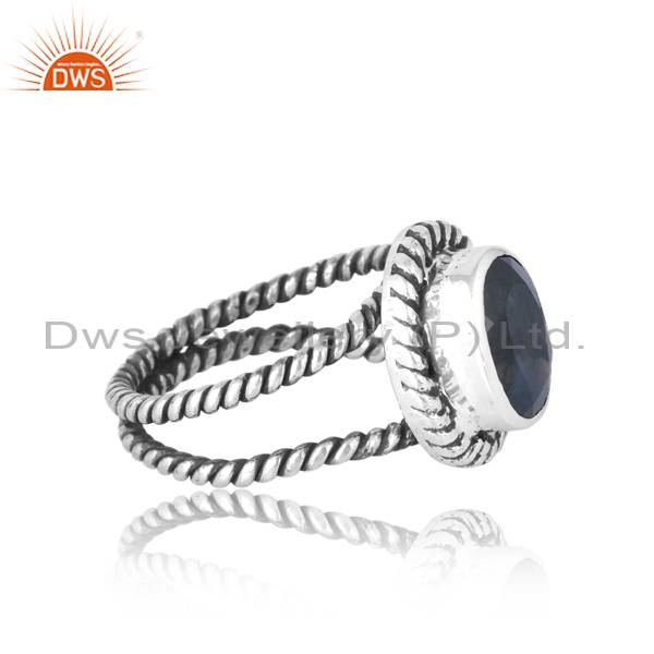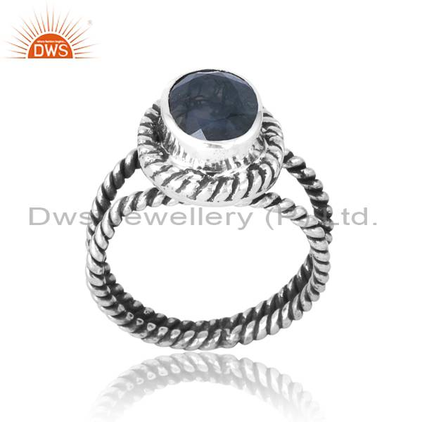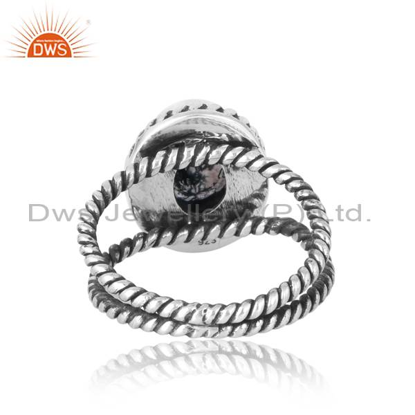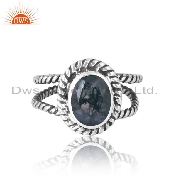 Moss Agate Sterling Silver Oxidized Cut Oval Ring