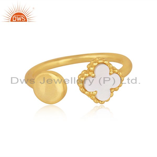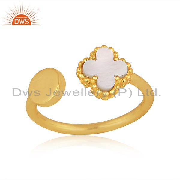 Mother Of Pearl Coin Set Gold On Silver Open Designer Ring