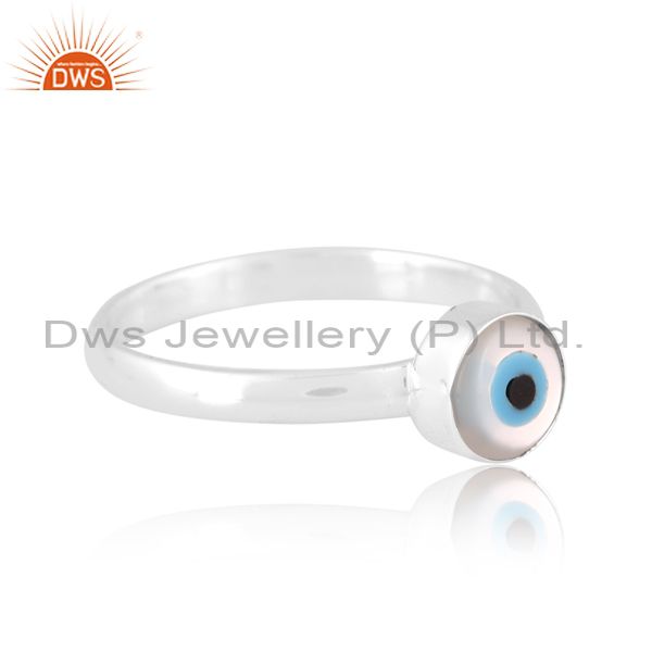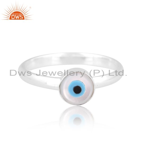 Mother Of Pearl Eye Round On White Sterling Silver Ring