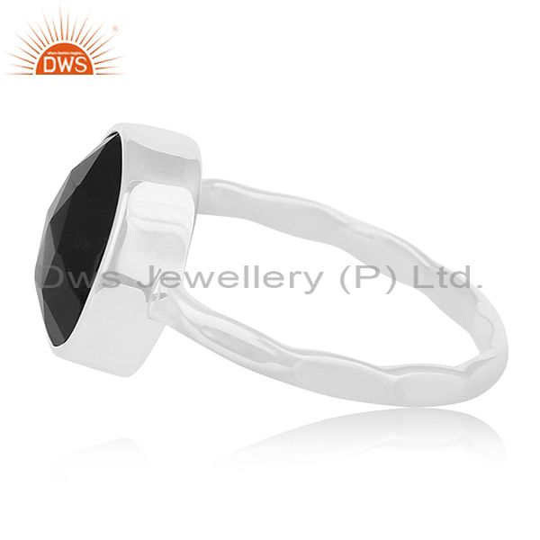 Multi Checkerboard Black Onyx Gemstone 92.5 Silver Handmade Ring Manufacturer
