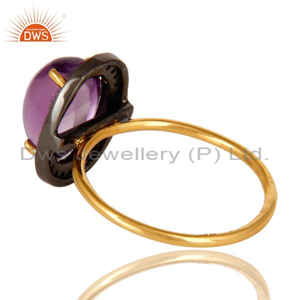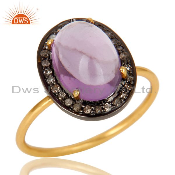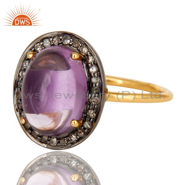 Natural Amethyst And Pave Set Diamond 14K Yellow Gold Statement Stack Ring