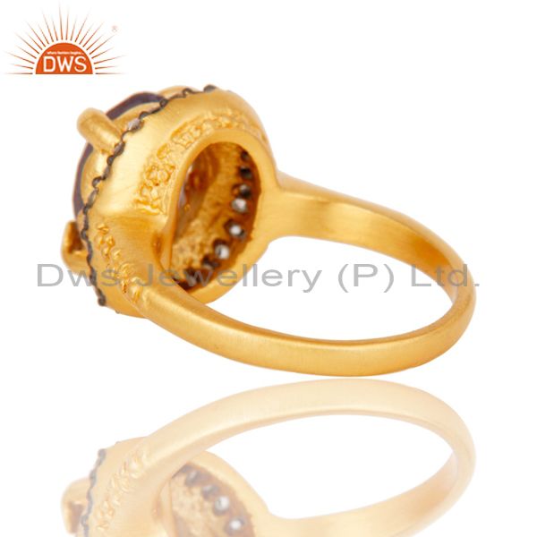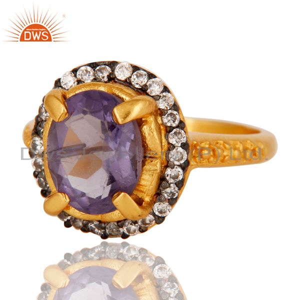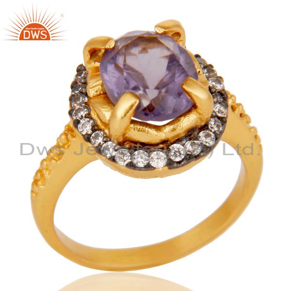 Natural Amethyst Prong Setting Gemstone White Zircon 18K Gold Plated Brass Ring