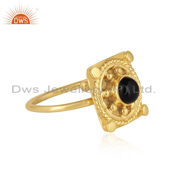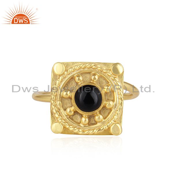 Natural Black Onyx Gemstone Handmade Designer Gold Plated Silver Rings