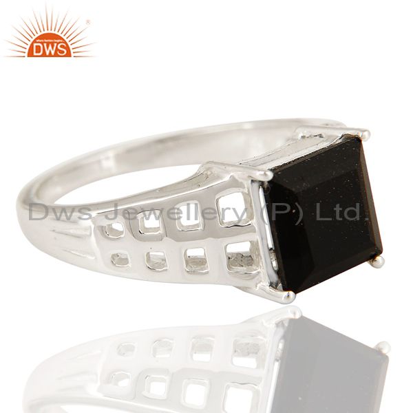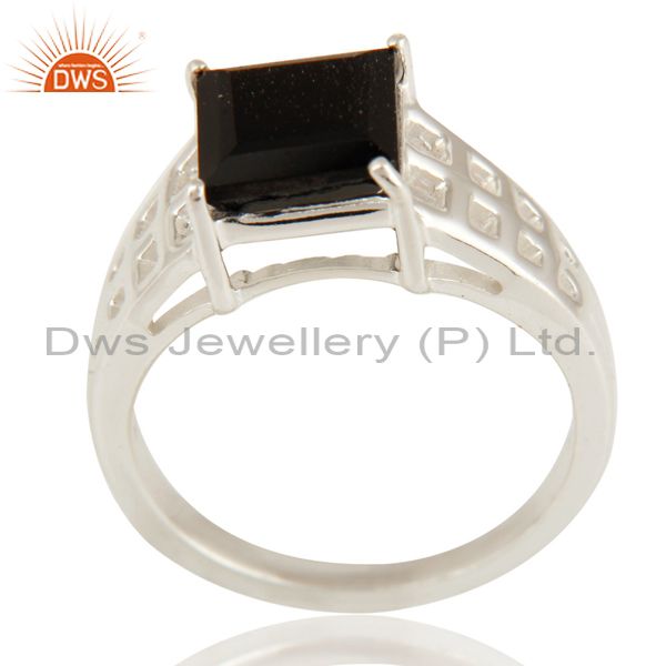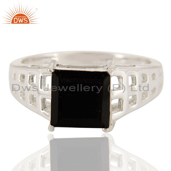 Natural Black Onyx Gemstone Square Cut Sterling Silver Ring