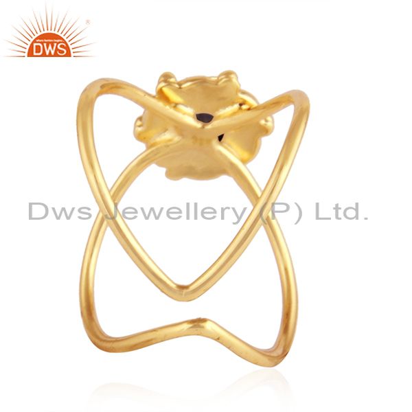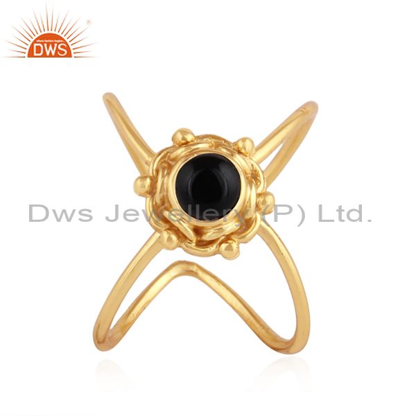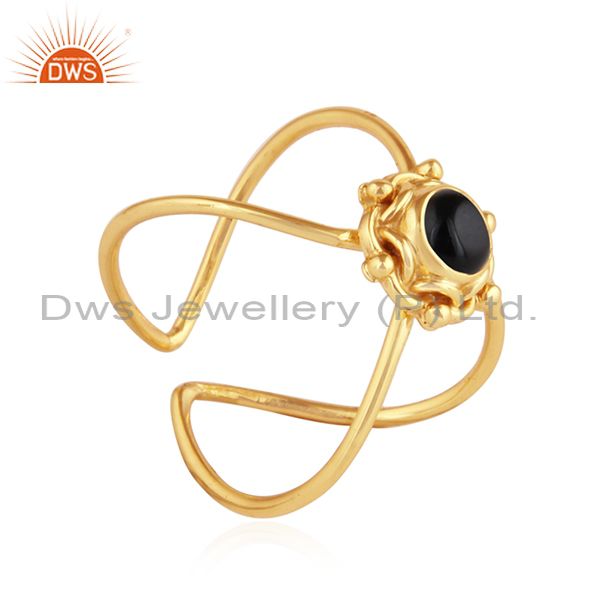 Natural Black Onyx Gemstone Yellow Gold Plated Silver Ring Jewelry