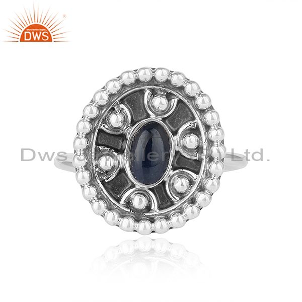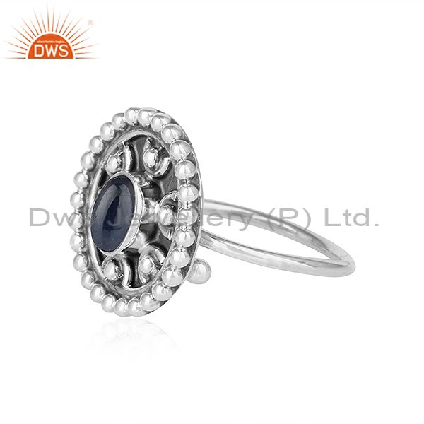 Natural Blue Sapphire Gemstone Oxidized Plated Designer Silver Rings