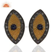 Natural Blue Sapphire Pave Diamond Designer Ring Hallmarked 925 Sterling Silver