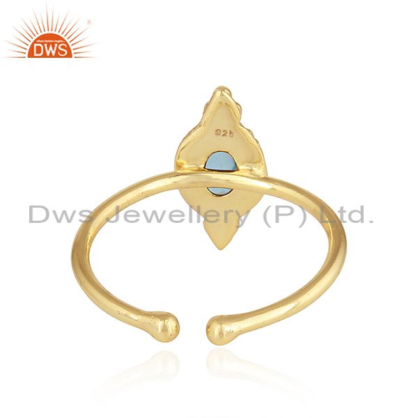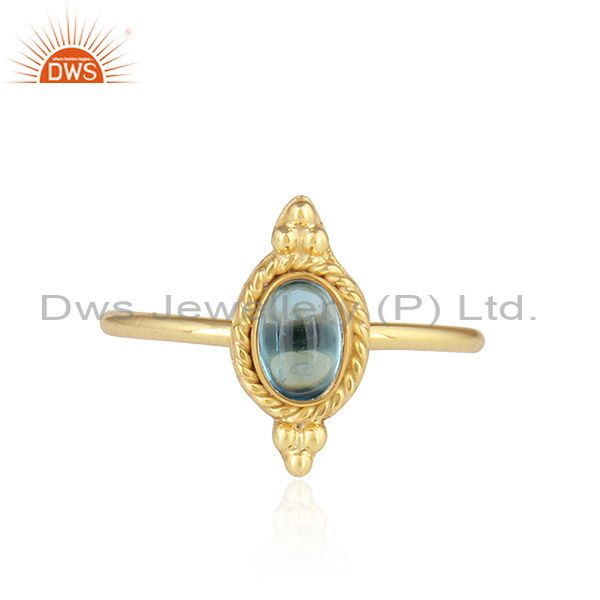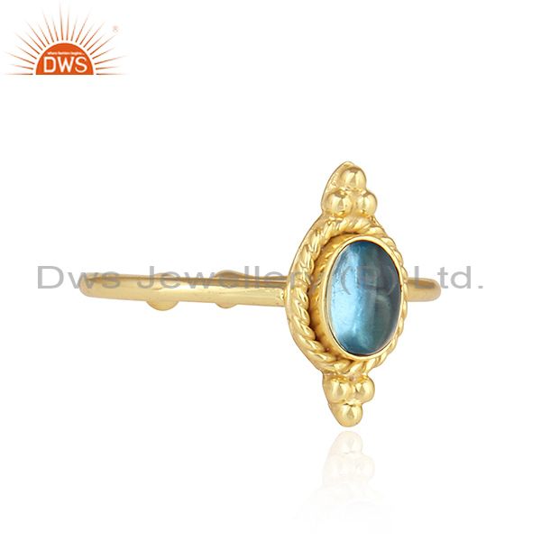 Natural Blue Topaz Gemstone Designer Gold Plated Silver Stackable Ring