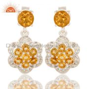 Natural Citrine And White Topaz Sterling Silver Solitaire Cocktail Ring