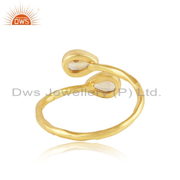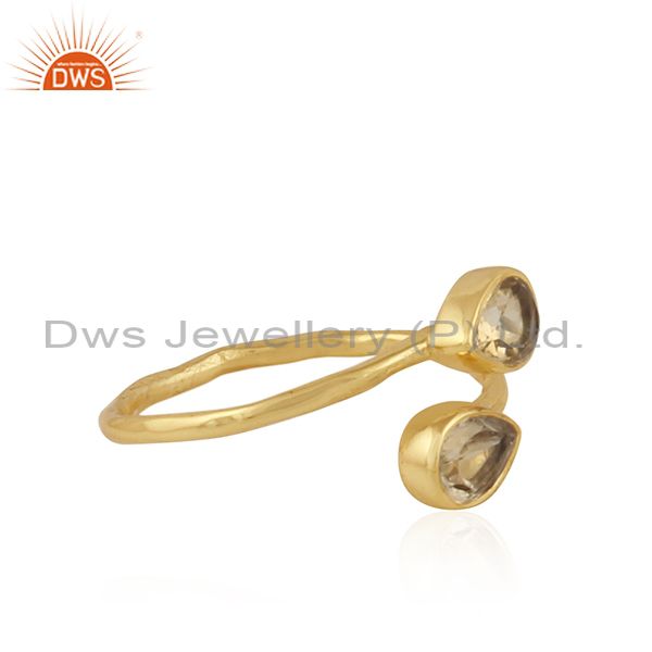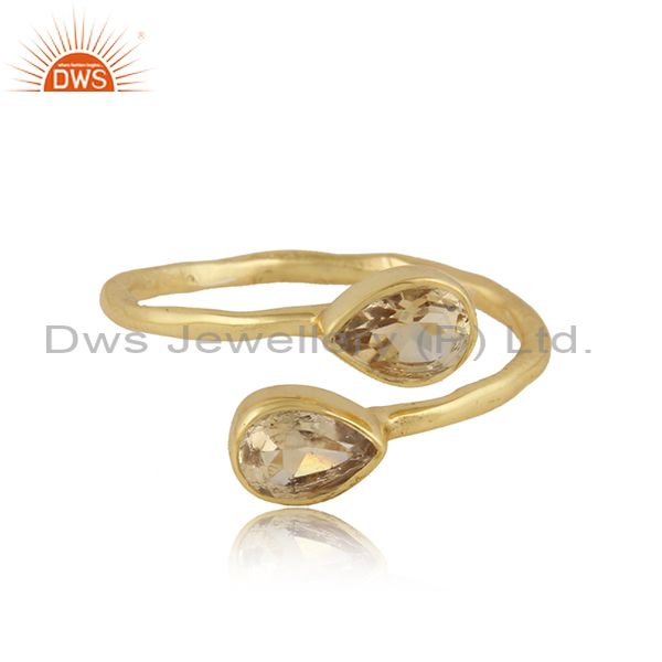 Natural Citrine Gemstone Designer Gold Plated Silver Womens Rings