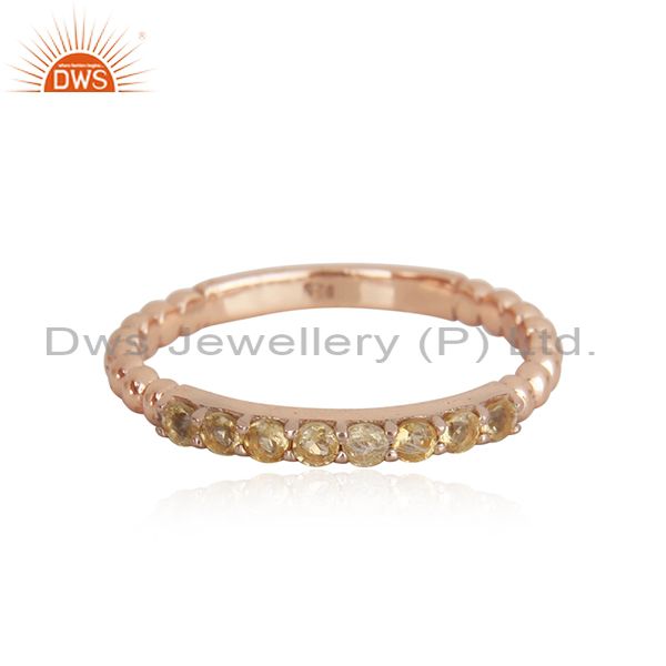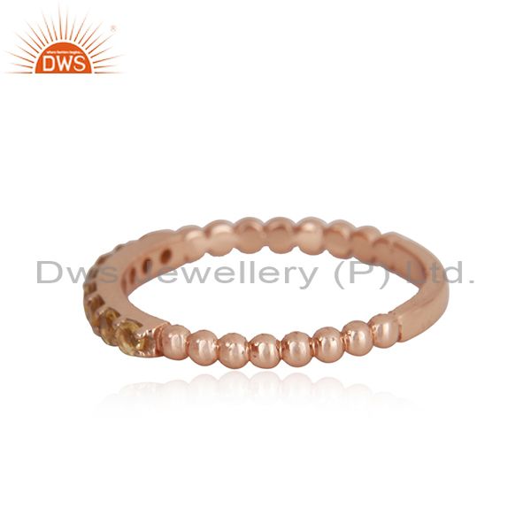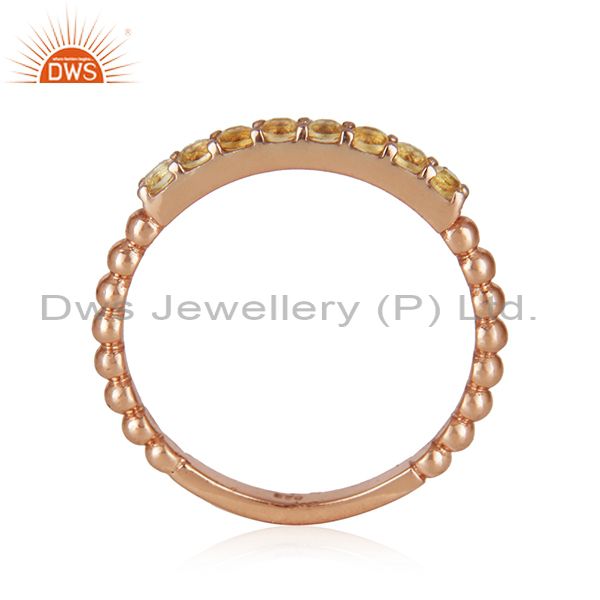 Natural Citrine Gemstone Rose Gold Plated Sterling Silver Band Rings