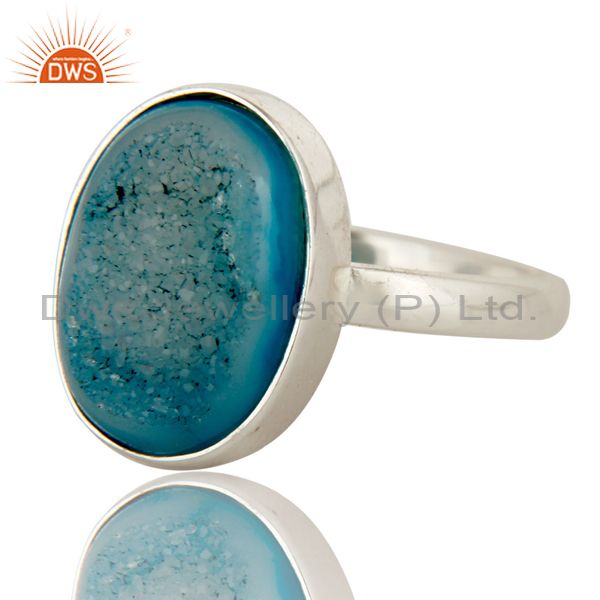 Natural Druzy Agate Oval Shape Genuine Sterling Silver Ring